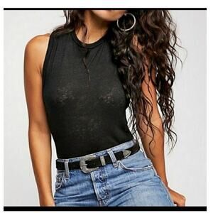 Free People All The Time Linen Blend Black Bodysuit size XS