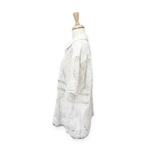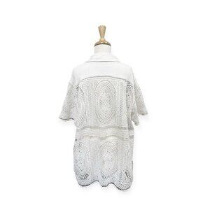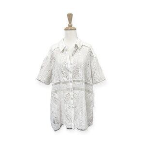 Free People All Things Sweet Crochet Lace Top Size M Medium White Collared Shirt