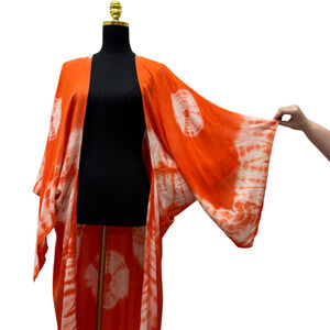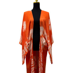 Free People "All Touched Up" Orange Tie-Dye Kimono Duster - One Size, NWT
