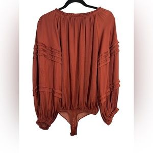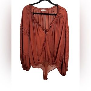 Size Medium but could easily fit Large. Excellent condition, beautiful russet color.