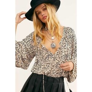 Free People All Tucks Printed Bodysuit Balloon Sleeve Floral Print Women's XS