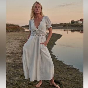 Free People All You Need Is Lace Midi Dress White Ivory Maxi Sundress Boho NWT