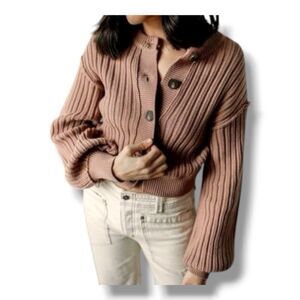 Free People All Yours Cardi Mocha Cardigan Knit Sweater Button Up Women’s Size S