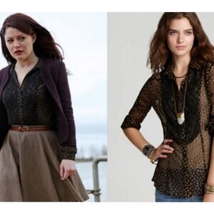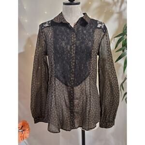 Free People All that Glitters Sheer Lace Blouse Size M Black Whimsigoth ASO TV