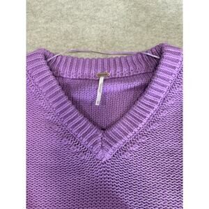Free People Alli Oversized Chunky V Neck Sweater Sz XL Iris Orchid Purple 2X
