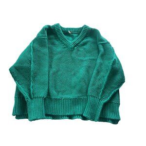 Free People Alli V-Neck Heavy Knit Sweater Mountain View SIZE XS Oversized