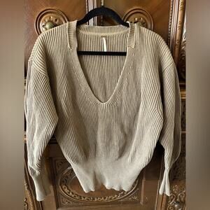 Free People Allure Ribbed Pullover V-Neck Long Sleeve Oversized Sweater