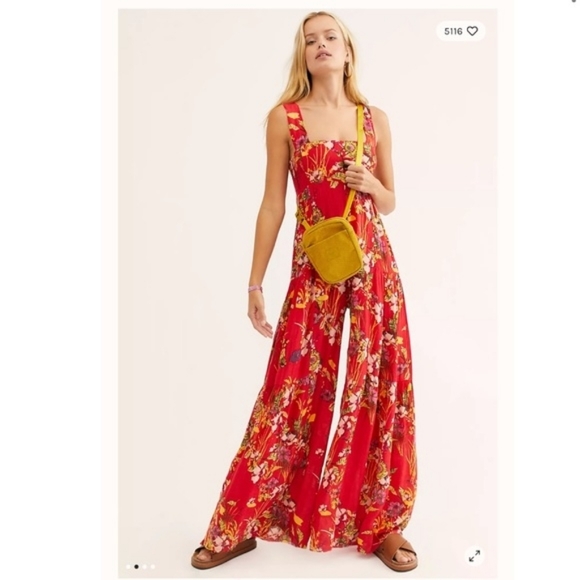 excellent condition, beautiful floral jumpsuit with super wide legs, lightweight and flowy