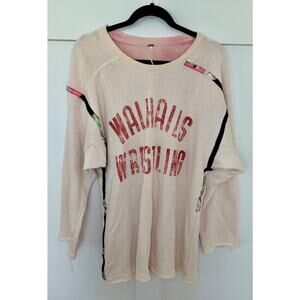 Free People Aloha Life Pullover Sweatshirt Beige Small Walhalis Wrestling Fringe