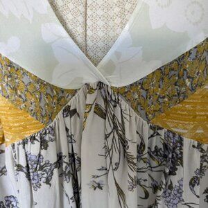 Free People Aloha State of Mind Yellow Floral Patchwork Long Sleeve Top.