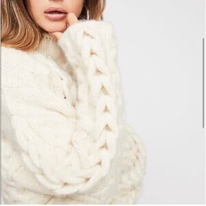 Free People Alpaca Oversized Cableknit Chunky White Cream Alpaca Sweater S
