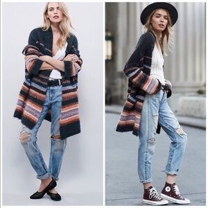 Free People Alpaca Wool Blend Striped Coat Medium