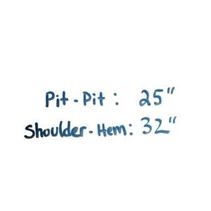 - Measurements: Pit-to-pit 25", Shoulder-to-hem 32"