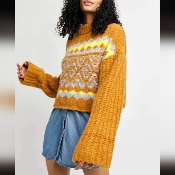 Free People "Alpine" Mock Neck Sweater in "Cinnamon Toast Combo"