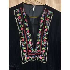 Free People Always Forever Black Velvet Embroidered Tunic Dress Sz XS TP