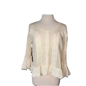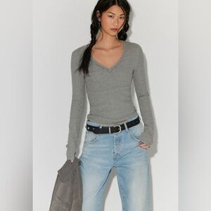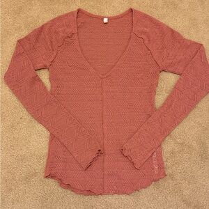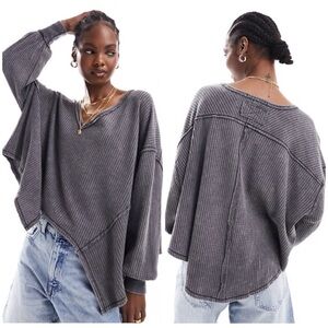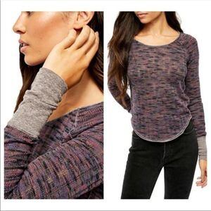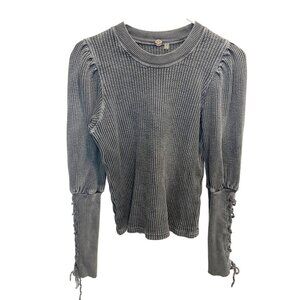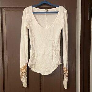 Free People top, Amara thermal, embroidered sleeve top, boho top, waffle knit top, v neck thermal, long sleeve top, festival style, western boho, y2k top, layering essential, casual chic, statement sleeves, women’s XS