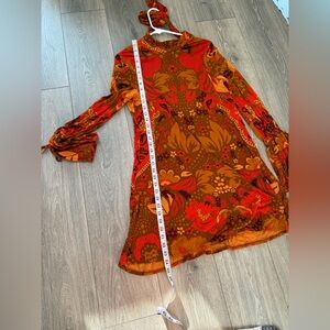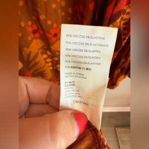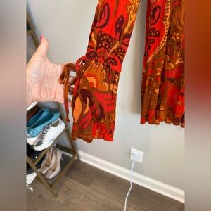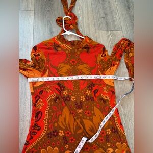 Chic open back with neck tie design. Vibrant floral pattern. Perfect for day or night. Jersey like feel. Long sleeved.