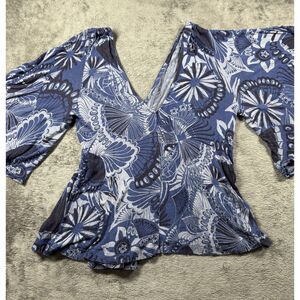 Free People Amour Flowy Floral Cold Shoulder Top Boho Festival Blue XS F129