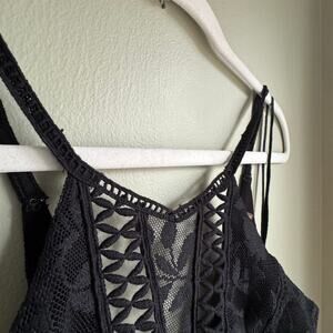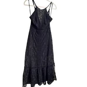 Free People Anastasia Halter Black Lace Crochet Midi Cut Out Sheer Dress 0