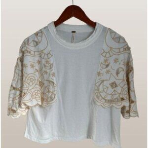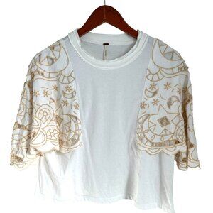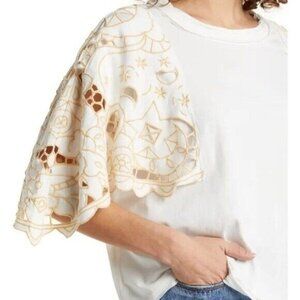 Free People Angel Embroidered Flutter Sleeve Cotton T-Shirt White - XS