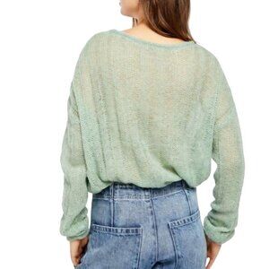 Experience the softness of this Free People mint green sweater. Crafted from a blend of wool and alpaca, this cable knit design is perfect for cozying up during colder months. Elastic Hems, Oversized. Missing Material tag