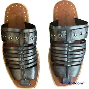 Free People Angler Huarache Leather Mule Sandals Black Size 36.