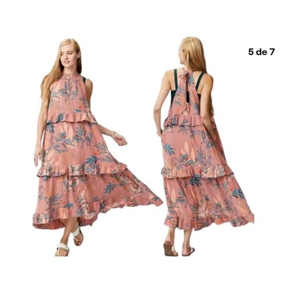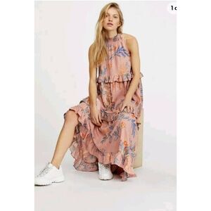 Free People Anita Tropical Printed Maxi Dress Size L Desert Rose Combo
