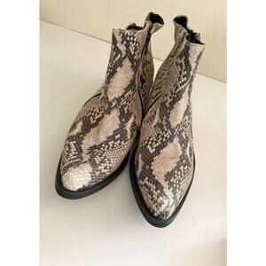 Free People Ankle Boots Snakeskin Side Zip Bock Heel Pointy Toe Size 7.5