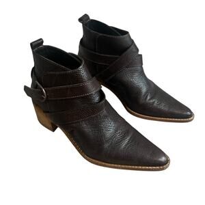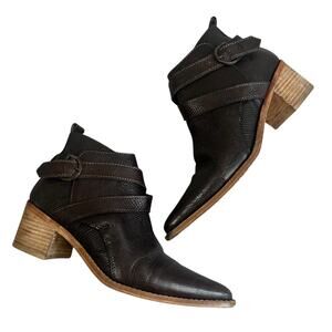 Free People Ankle Boots Womens 6.5 Dark Brown Leather Boho Western Cowgirl Rodeo