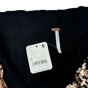 Free People Annalise Sequin Mini Skirt 6 New Gold Black Slit Edgy Boho Glam