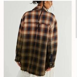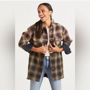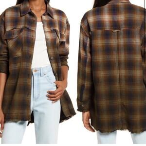 A major must-have, this effortless shirt jacket from our We The Free collection is featured in a contrast plaid print and button-front style in an oversized, slouchy silhouette.