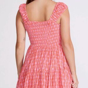 Free People's new Annie Mini Dress adds a romantic touch to your look. This flowy dress features a square neckline, a smocked bodice, ruched capped sleeves, a tiered skirt silhouette, and a bold floral print for added dimension.