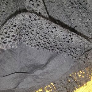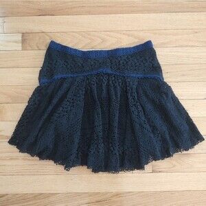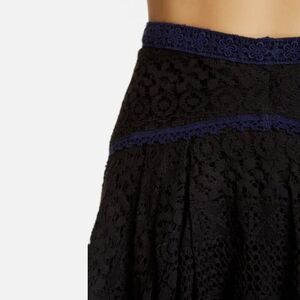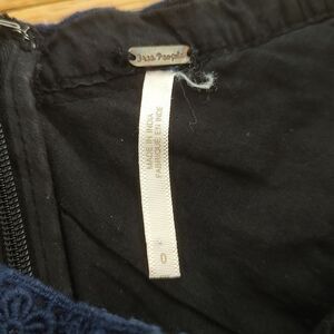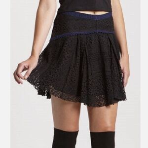 Free People black crochet lace "Apple of My Eye" mini skirt with blue lace detail. Size 0, EUC.