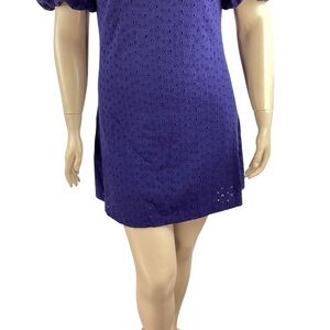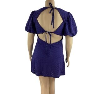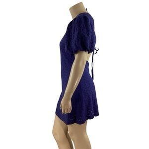 Free People Apricot Rose Mini Dress Living Indigo Eyelet Puff Sleeve Open Back L