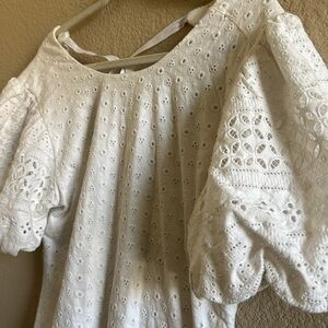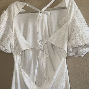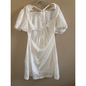 Free People Apricot Rose White Eyelet Mini Dress Open Back Size Medium