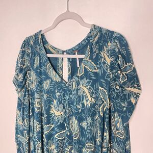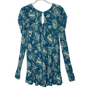 Free People Aqua Blue Baroque Boho Flowy Long Sleeve Top S #MM