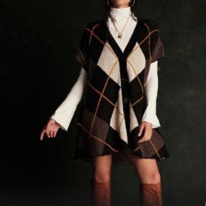 Free People Argyle Swing Dress knit w/ pockets small to XL oversized black tan