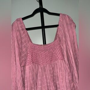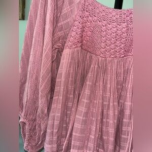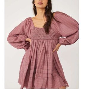 Forever femme and effortlessly essential, this so sweet mini dress features a square-neck silhouette with crochet-adorned bust detailing and puffed sleeves in a woven fabrication.