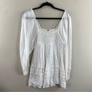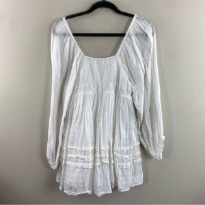 Free People Ari Mini Ivory 100% Cotton Gauze Cottage Boho Mini Dress Sz XS