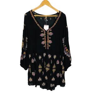 Free People Ariana Embroidered Tunic Womens Small Black Floral Oversized NWT
