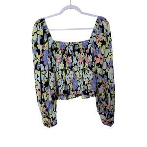 Free People Ariana Floral Printed Smocked Bodice Blouse Women S Black Multi Boho