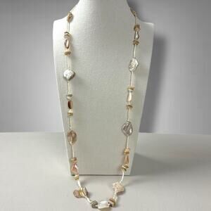 Add a special finishing touch to any ‘fit with this stunning strand necklace featured in a shell-adorned design.
