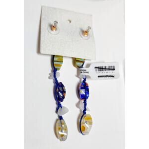 Free People Ariana Ost Voyage Dangle Earrings Artisanal Beaded Crystal Glass in Navy Multi