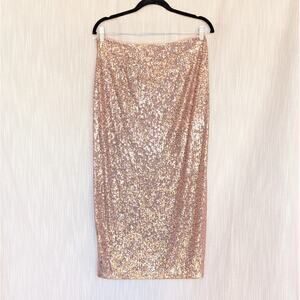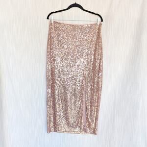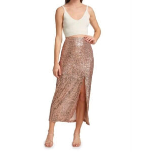 Free People Ariana Sequin Front Slit A-line Maxi Skirt in Pink Champagne, size 10