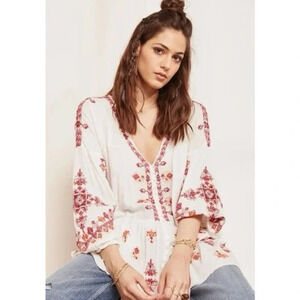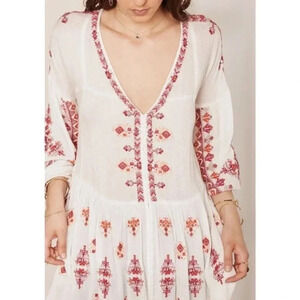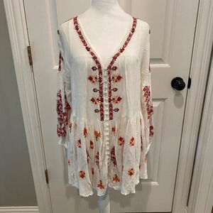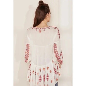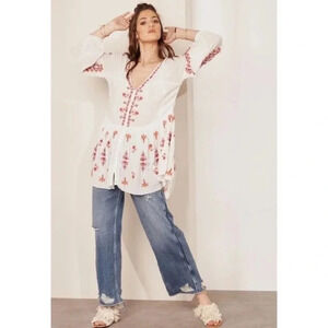 Free People Arianna Embroidered Tunic Top Shirred Ruffle Hem Cream 16788