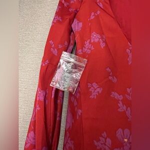 Free People Aries Red Floral Long Sleeve Open Back Mini Dress size Small