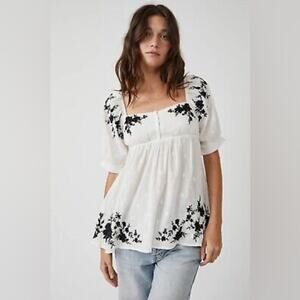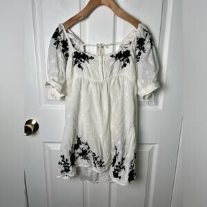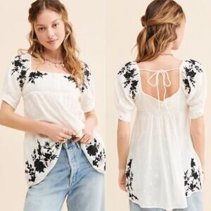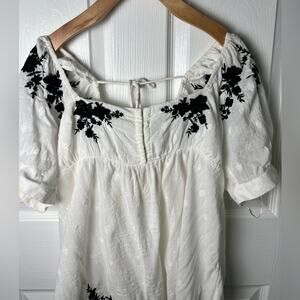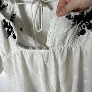 Free People Arlo Embroidered Floral Puff Sleeve White Square Neck Tunic Top XS