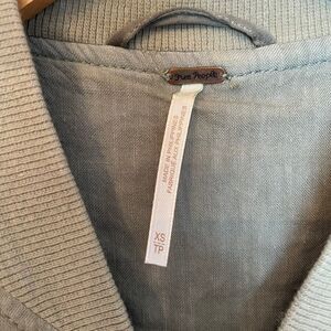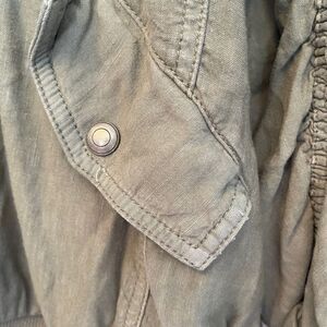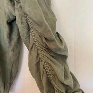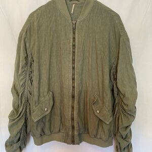 Free People Ruched Linen Bomber Jacket in khaki green. Gently used no signs of wear, tears or piling. See photos for details