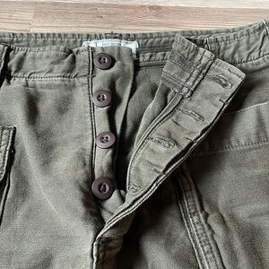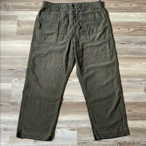 Free People Army green Utility pants Straight leg Raw hem Button fly Size 31