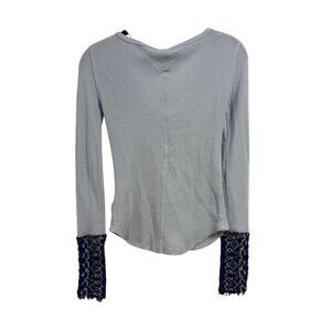 Free People Art School Cuff Long Sleeve Waffle Knit Thermal Blue Size XS